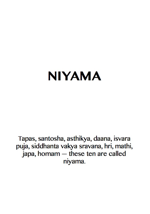 Below is Krishnamacharya's presentation of Yama Niyama but first here's wikipedia, presenting the traditional ten yama and ten niyama as well as the five of each found in Patanjali's yoga sutras.